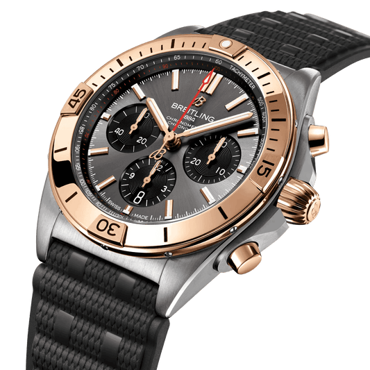 BREITLING Chronomat B01 42 Men’s Watch, Stainless Steel & Red Gold case, Grey dial, Rubber strap